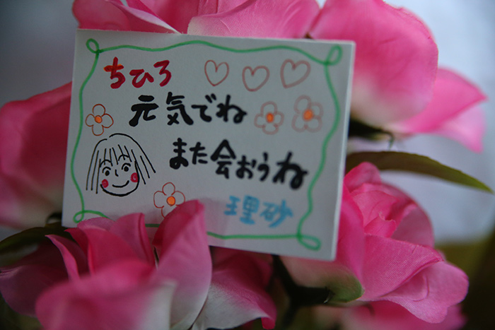 撮影の際は衣装を手作りし、小道具も制作をしています。ジブリの小道具は印象に残るものが多く、千と千尋に登場する「メッセージカード」「海原鉄道の切符」、ハウルの動く城に登場する「赤い紙」、魔女の宅急便に登場する「招待状」など撮影のたびに制作をしてきました。
